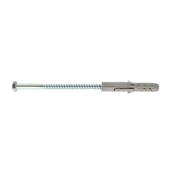 Diblul din polipropilenă, însoțit de un șurub cu cap hexagonal, este destinat fixării diverselor elemente pe baze de beton, cărămidă, gips-carton și lemn. Capul hexagonal al șurubului permite o prindere ușoară cu instrumente precum cheia fixă sau tubulară, facilitând astfel montajul rapid și eficient.