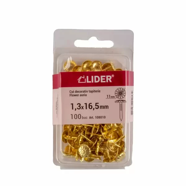 Cui decorativ în formă de floare cu acoperire aurită este un element elegant și rafinat de design, destinat să adauge o notă de lux și sofisticare în interior. Acoperirea aurită nu doar că oferă cuiului un aspect opulent, dar îl și protejează împotriva coroziunii. Acești cuie sunt ideali pentru fixarea decorativă a obiectelor ușoare, cum ar fi ramele de tablouri, oglinzile sau panourile decorative.
