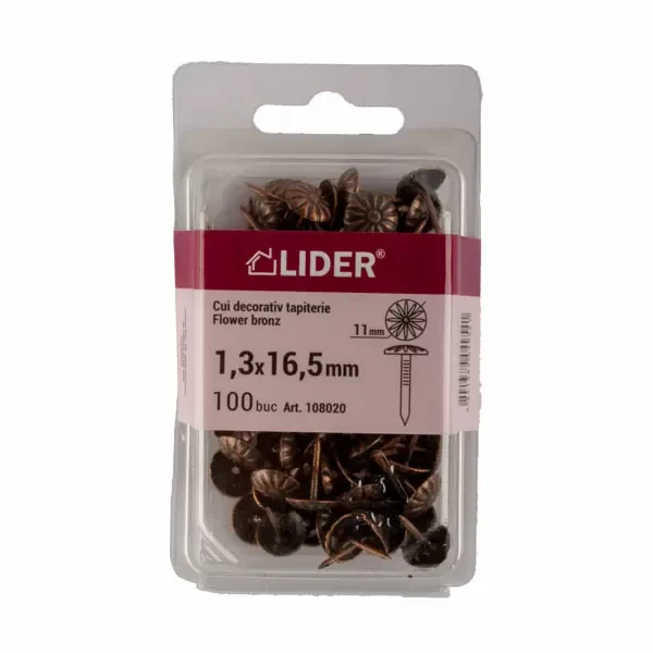 Cui decorativ în formă de floare cu acoperire din bronz patinat este un element unic de decor care conferă interiorului un aspect vintage și nobil. Acoperirea nu doar îmbunătățește aspectul cuiului, dar oferă și protecție suplimentară împotriva coroziunii. Este ideal pentru fixarea elementelor decorative pe pereți, inclusiv tablouri, oglinzi sau panouri decorative, adăugând eleganță și un farmec antic oricărui spațiu.