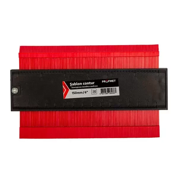 Șablon riglă contur cu lungimea de 150 mm (aproximativ 6 inch), fabricat din plastic, este un instrument versatil, destinat reproducerii exacte și transferului diferitelor contururi și forme pe suprafața de lucru. Este deosebit de util în construcții, lucrări de tâmplărie, craft și modelism, unde este necesară o copie precisă a conturului unei piese pentru prelucrare ulterioară sau verificarea conformității dimensiunilor.