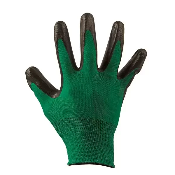 Mănuși din poliester - sunt mănuși de lucru practice, destinate protecției mâinilor în diverse tipuri de activități. Fabricate din poliester verde, acestea oferă confort și rezistență. Acoperirea parțială cu nitril negru pe partea palmelor îmbunătățește aderența și protecția împotriva uzurii, păstrând în același timp sensibilitatea degetelor. Manșeta tricotată se potrivește strâns pe încheietura mâinii, prevenind intrarea murdăriei și a prafului în mănușă.