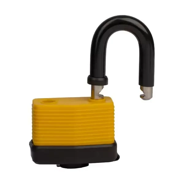 Corpul din fontă și cătușul din oțel inoxidabil sunt complet protejate de o acoperire cauciucată, iar gaura pentru cheie (broasca) este dotată cu un dispozitiv de închidere special pentru a preveni pătrunderea murdăriei și a prafului.