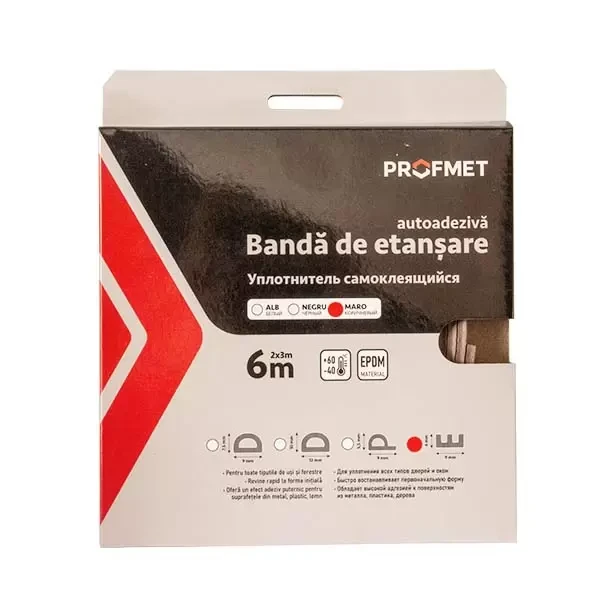 Bandă de etanșare autoadezivă "E" reprezintă o soluție de înaltă calitate pentru izolarea și etanșarea eficientă a ușilor și ferestrelor. Această bandă autoadezivă oferă o protecție excelentă împotriva pătrunderii frigului, zgomotului, prafului și curentului de aer, făcând-o o alegere ideală pentru îmbunătățirea confortului și eficienței energetice a încăperilor.