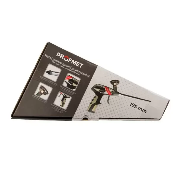 Pistol pentru spumă poliuretanică, 335 mm, cu mâner bicomponent este un instrument avansat și eficient, destinat aplicării profesionale a spumei poliuretanice. Mânerul bicomponent combină rezistența cu confortul de utilizare, oferind o ergonomie superioară și reducând oboseala în timpul utilizării prelungite. Lungimea pistolului facilitează aplicarea spumei în zone greu accesibile, asigurând o distribuție precisă și uniformă a materialului.