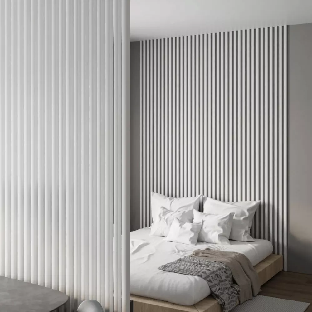 Lamelele interioare Stella din MDF, forma Briona, din colecția Standard, în nuanța universală Alb, sunt chintesența ușurinței și a impecabilității.