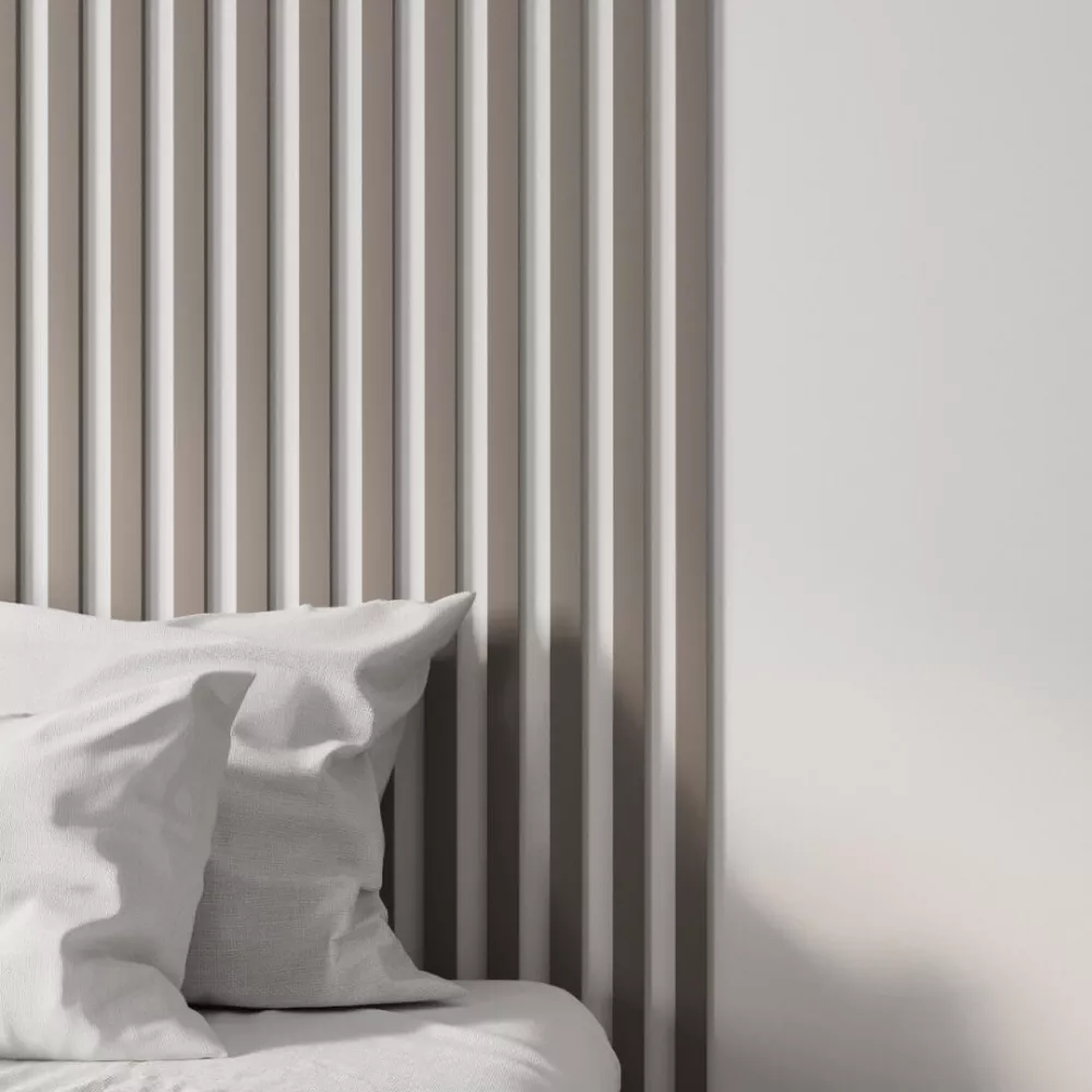 Lamele de interior Stella din MDF, în forma Milanei, din colecția De Luxe, în nuanța laconică Sandgrau - vă transportă în atmosfera Londrei încețoșate.