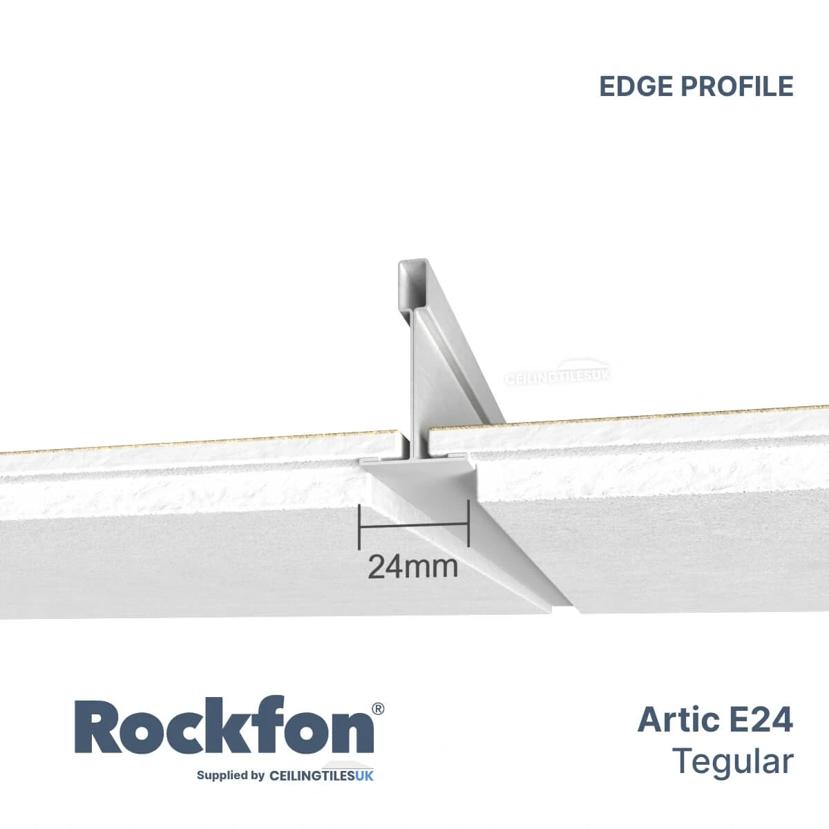 Plăcile Rockfon® Pacific™ au o suprafață netedă, de culoare albă, un strat din fibră de sticlă în partea din spate și muchii pictate.